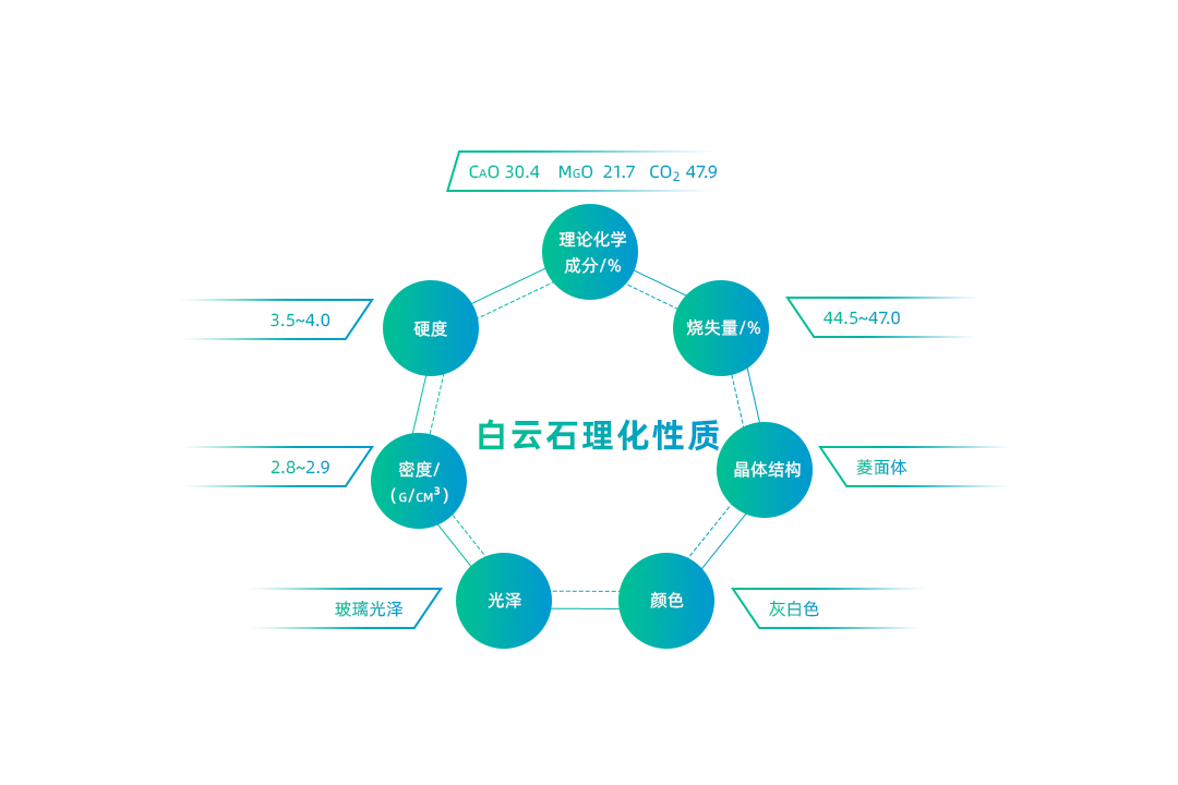 白云石兼具物理穩(wěn)定性與化學活性,其核心特性包括: